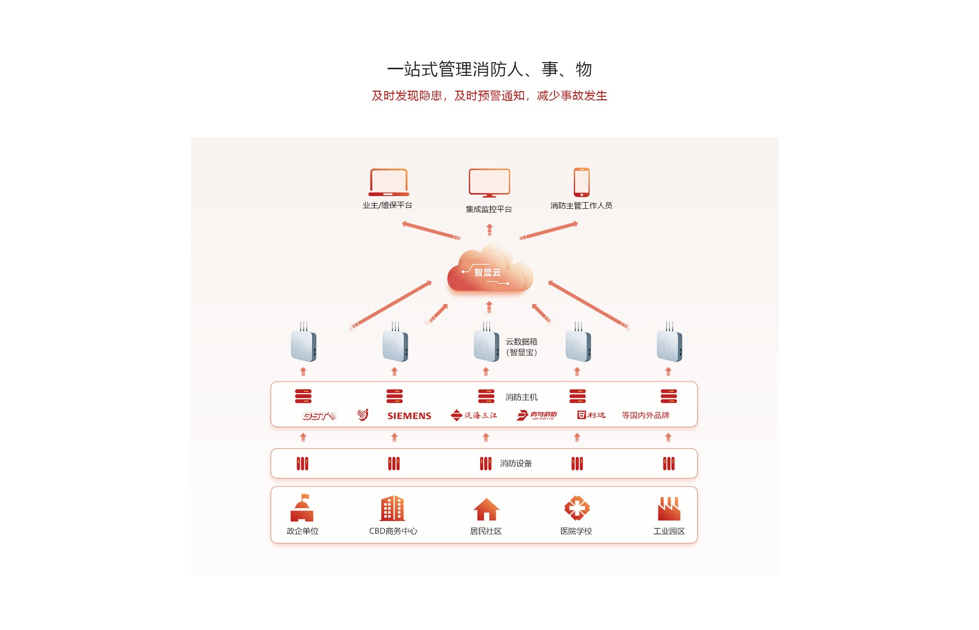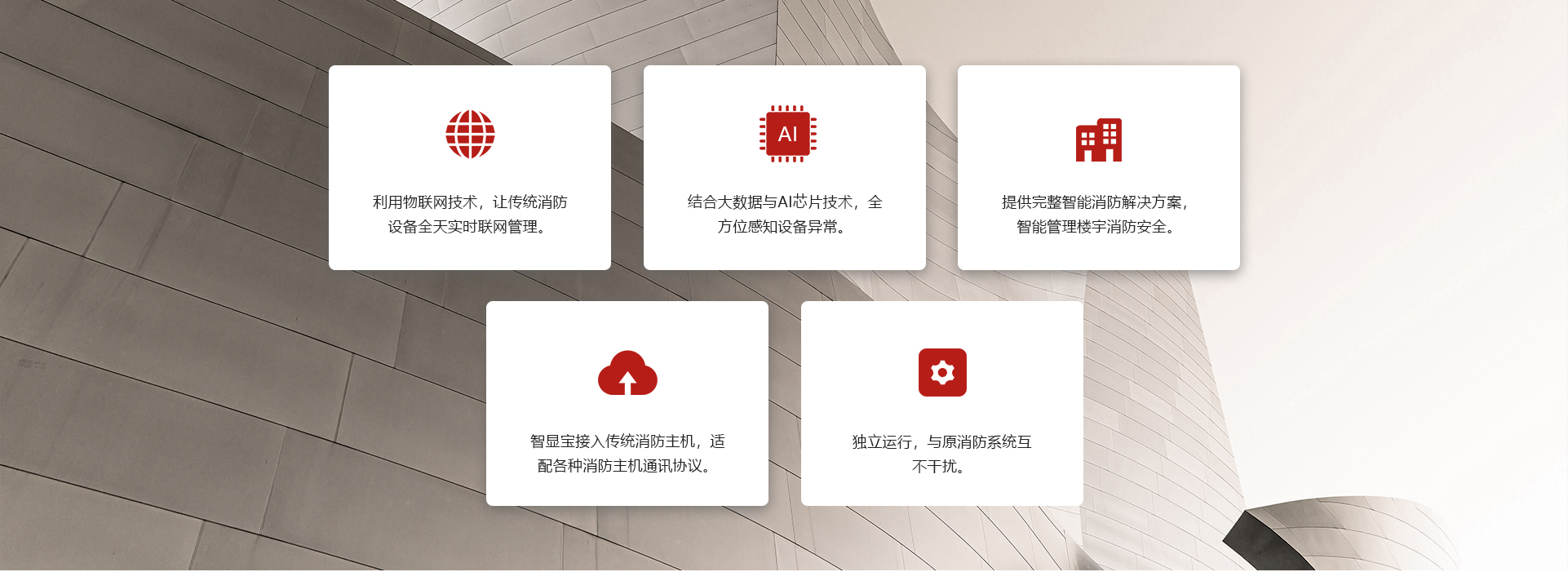粤安科技响应国家智慧城市战略号召,推动智慧消防的技术创新与市场应用。携手华南理工大学科研团队,组建20多名硕士研究生与技术人员的研发中心队伍,进行智慧消防技术创新研究与实践。基于传统消防系统特点,自主研发智显宝(消防数据传输装置),不改变原有消防系统进行智慧消防物联升级。通过智显消防云平台,使用户通过智能手机应用、云端应用对消防设备与消防维保工作进行实时监管。利用物联网、大数据与人工智能技术解决传统消防监管难点、提升维保工作效率、为救灾救援提供可靠的数据支持。